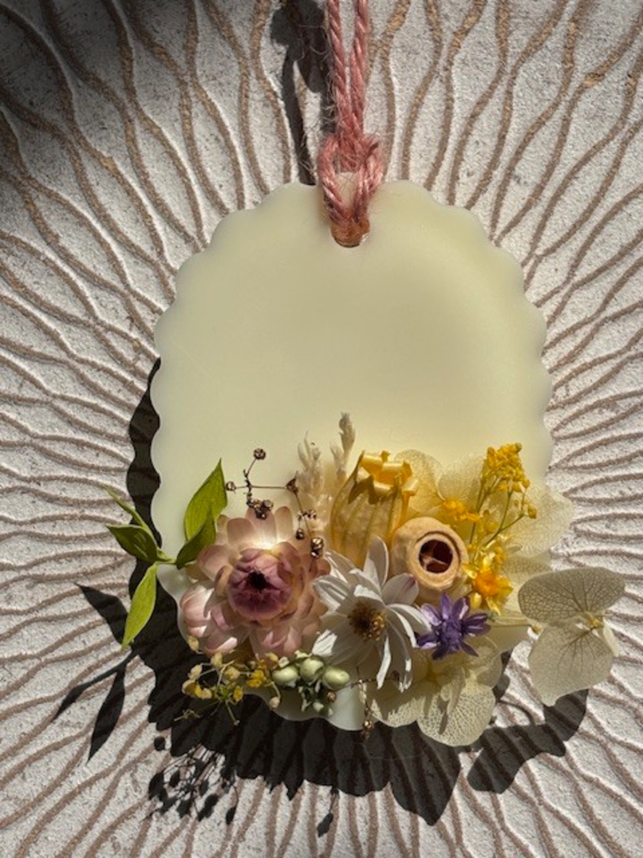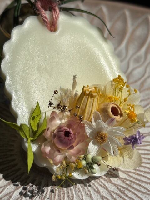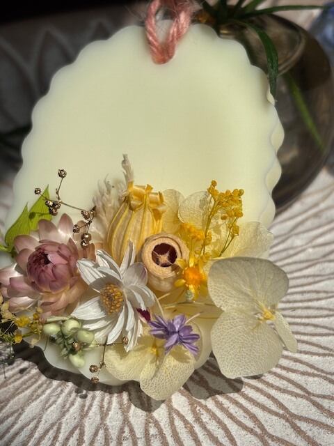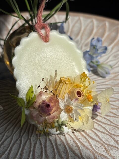 精油の香りが高いままお届けしたく、ご注文を頂いてからの制作になります。画像に近い花材とデザインでお作り致しますが、手作りのため個体差が出てしまう事をご了承願います。