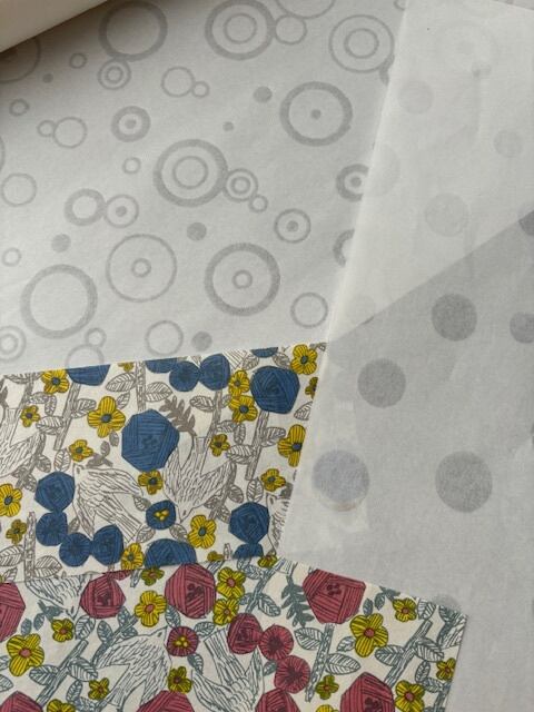 OnKaのラッピングペーパーは美濃で作られた和紙を使っております。赤と青は「山鳥の詩」という名の和紙で、美濃の美しい自然をイメージして野の花や山鳥がモチーフとなっています。白は「雨声」と「灯」という名の透かし和紙です。