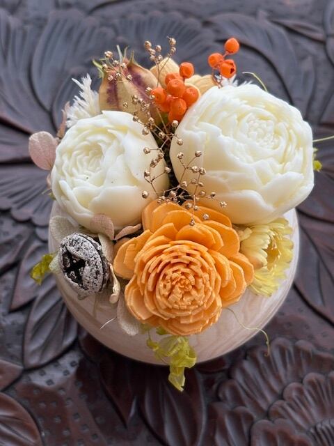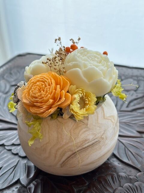 天然素材の精油&ソイワックスのアロマブーケ      ✿オレンジのお花✿