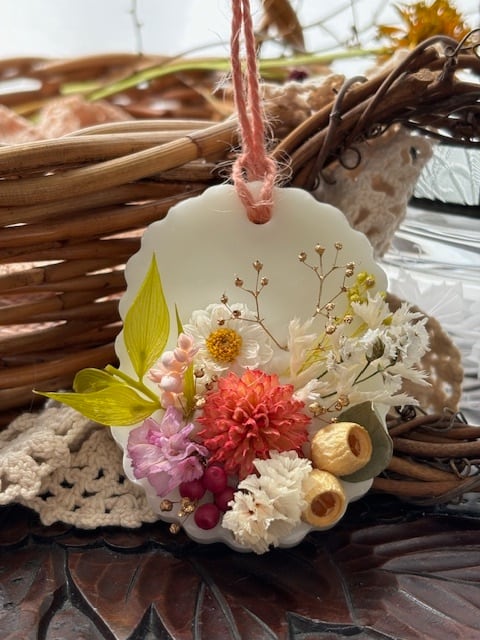 精油の香りが高いままお届けしたく、ご注文を頂いてからの制作になります。画像に近い花材とデザインでお作り致しますが、手作りのため個体差が出てしまう事をご了承願います。