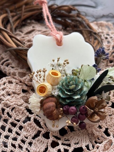 精油の香りが高いままお届けしたく、ご注文を頂いてからの制作になります。画像に近い花材とデザインでお作り致しますが、手作りのため個体差が出てしまう事をご了承願います。