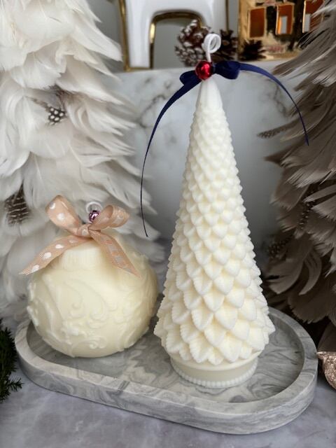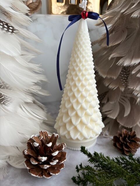 真っ白なクリスマスツリーは飾っているだけでも素敵な雰囲気を演出してくれます。葉っぱひとつひとつもリアルで可愛いキャンドルです。クリスマスパーティやディナーテーブルでキャンドルに火を灯してもソイワックスは黒いススがでにくく、精油の香りは優しいのでお料理の美味しい匂いを邪魔しません。ご自宅用やクリスマスのプチギフト、ささやかな贈り物におすすめです。