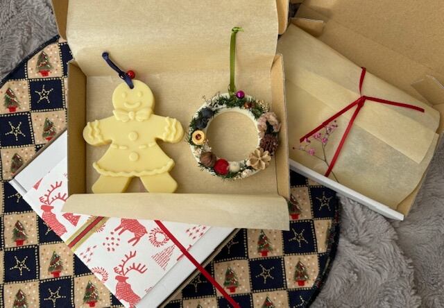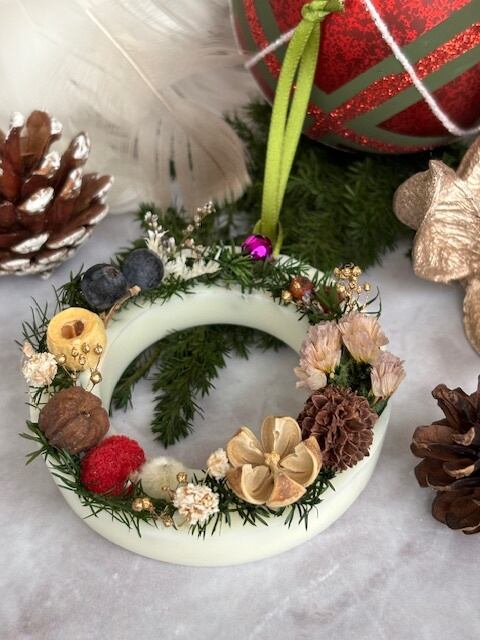 クリスマスツリーのオーナメントとして飾ったり、玄関先やリビング、寝室のベットサイドテーブルに置くとフワリと優しく精油が香ります。クリスマスのプチギフトや、ささやかな贈り物に喜ばれることでしょう。