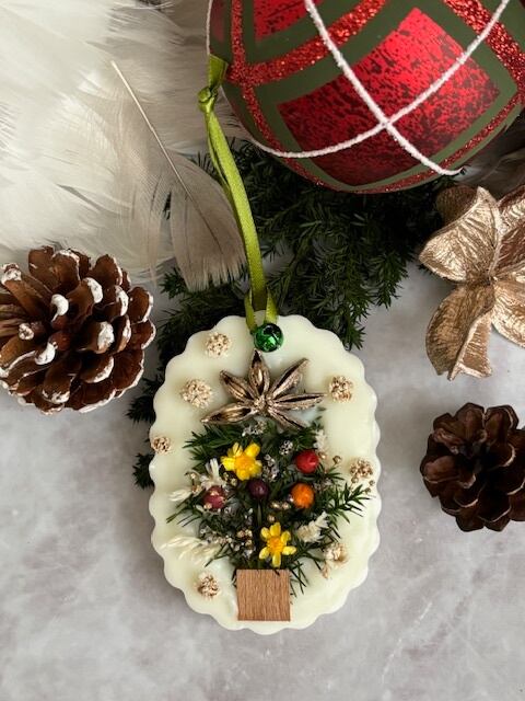 クリスマスツリーのオーナメントとして飾ったり、玄関先やリビング、寝室のベットサイドテーブルに置くとフワリと優しく精油が香ります。クリスマスのプチギフトや、ささやかな贈り物に喜ばれることでしょう。