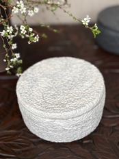 ジェスモナイト容器は工程上、気泡による小さなピンホールや凹凸等が入る場合があります。使用に問題はありませんが風合いとしてご理解いただけますと幸いです。